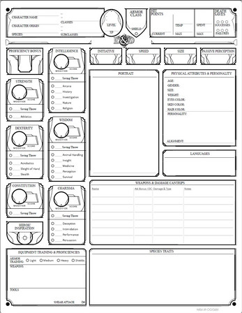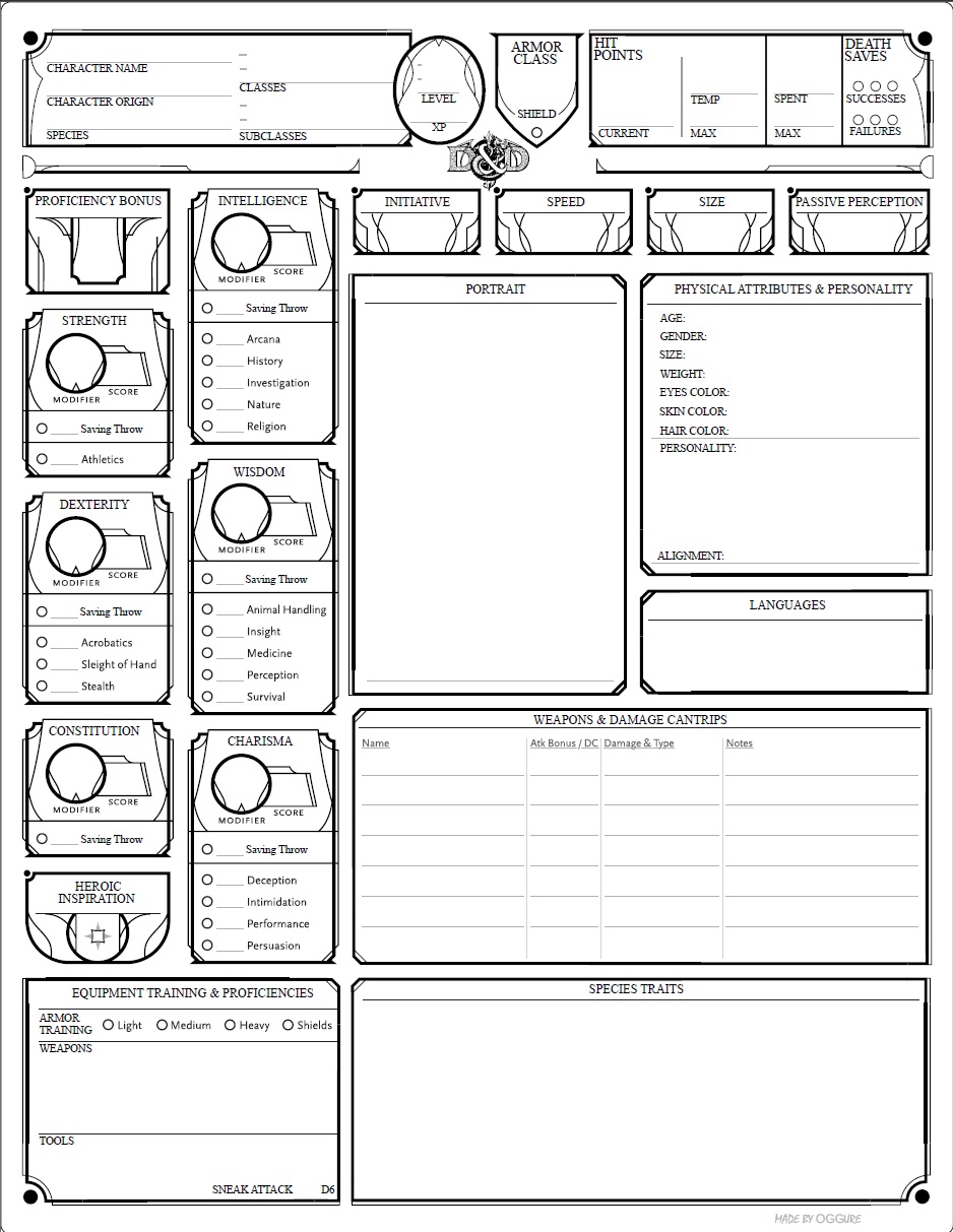 This is a fan-made, unofficial character sheet. This product is not affiliated with, sponsored, or endorsed by Wizards of the Coast or any other publisher. It is designed for use with a wide range of TTRPG systems.