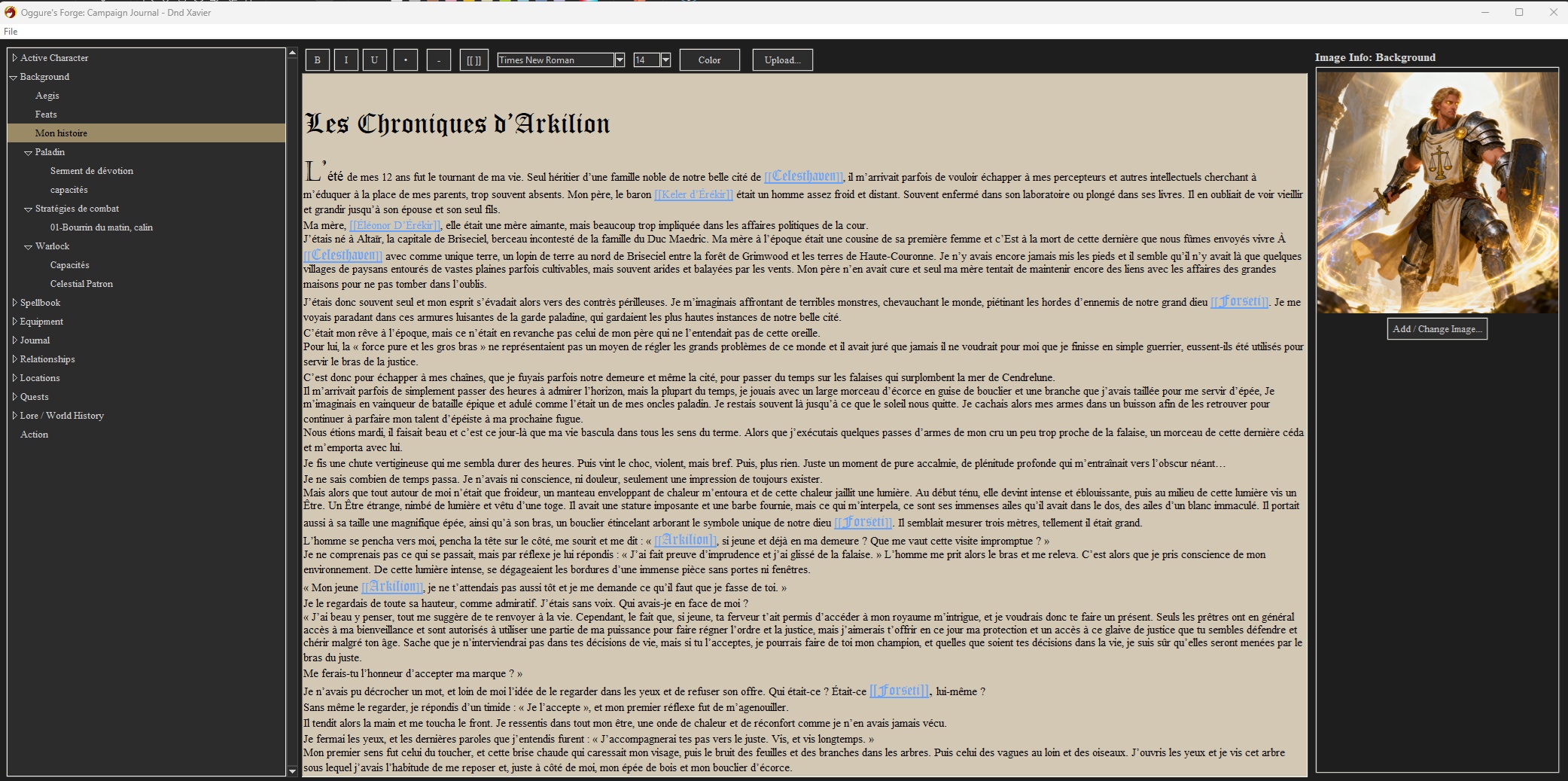 - Hyperlink System: Simply type any entry name in [[double brackets]] to create an instant, clickable link. If the entry doesn't exist, the link turns red—click it, and the Forge will offer to create it for you!